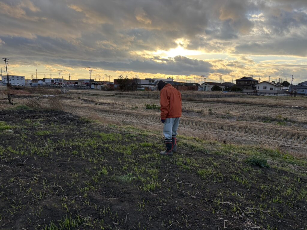 年明け、畑の様子を見に行ってきました。11月末に蒔いたライムギ。かわいい芽が出てきていました。