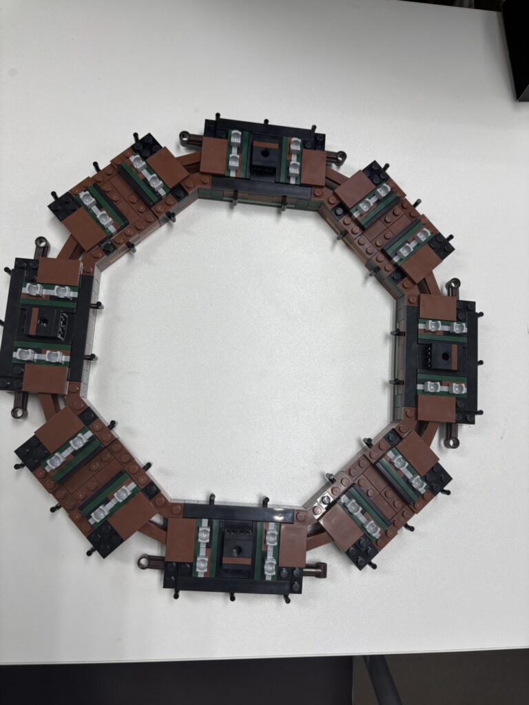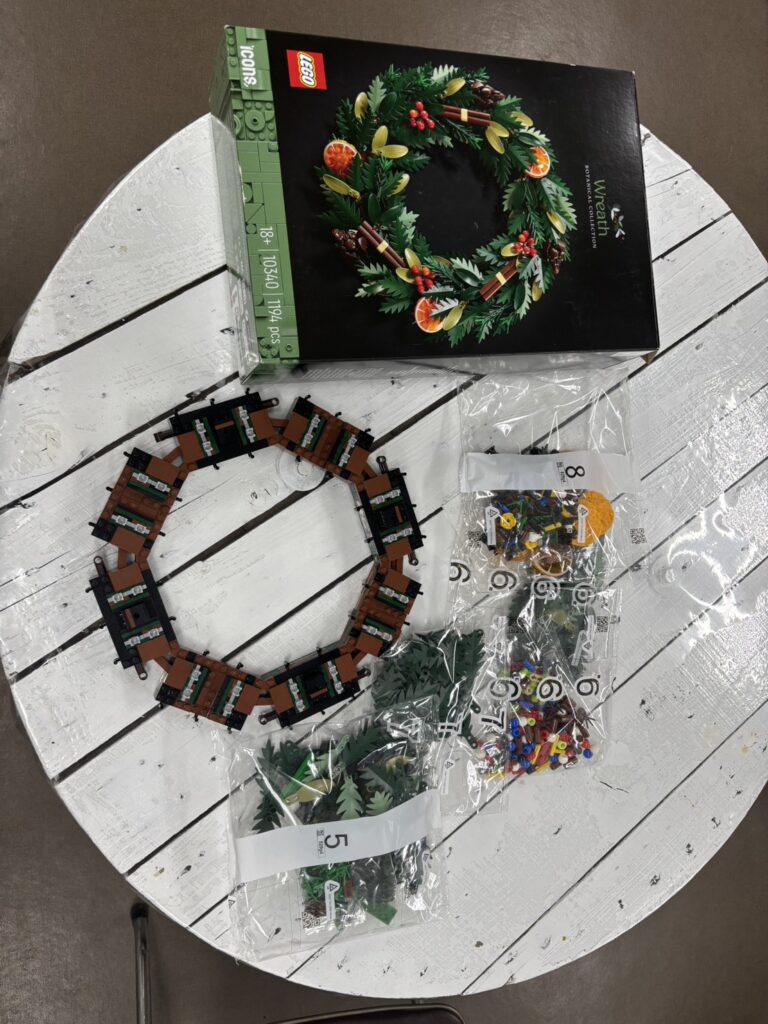 利用者さんが、一緒に組み立てて~とレゴのすてきなクリスマスリースを持って来てくれました。